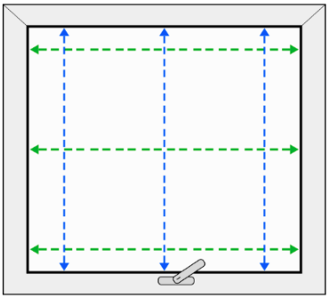 Meet de hoogte van het glas van glaslat tot glaslat op drie plekken: